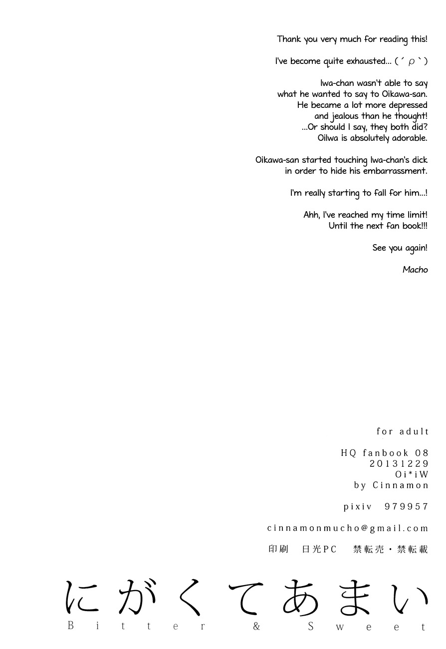 (C85) [Cinnamon (Macho)] Nigakute Amai (Haikyuu!!) [English] [Baka Dumb Aho Scans]