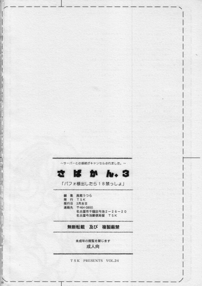[TSK (Fuuga Utsura)] Sabakan. 3 ~Server to no Setsuzoku ga Cancel saremashita~ (Ragnarok Online)