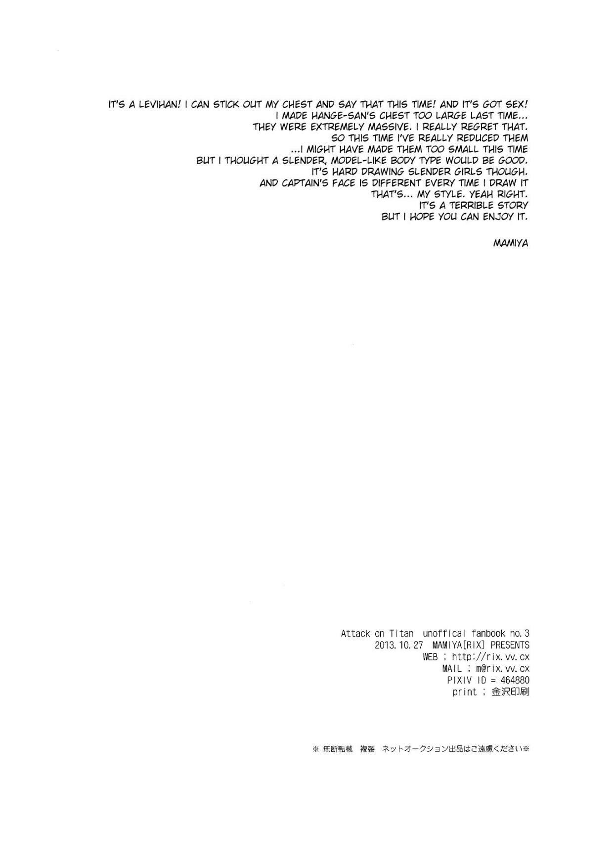(SPARK8) [RIX (Mamiya)] Aitsu no Rittai Kidou | His 3D Stand Up Gear (Shingeki no Kyojin) [English] [Moy Moe Scanlations]