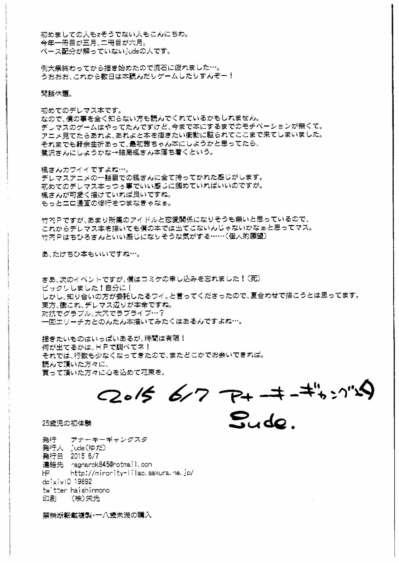 (Cinderella Memories 6) [Anarchy Gangsta (jude)] 25-saiji no Hatsutaiken (THE IDOLM@STER CINDERELLA GIRLS)