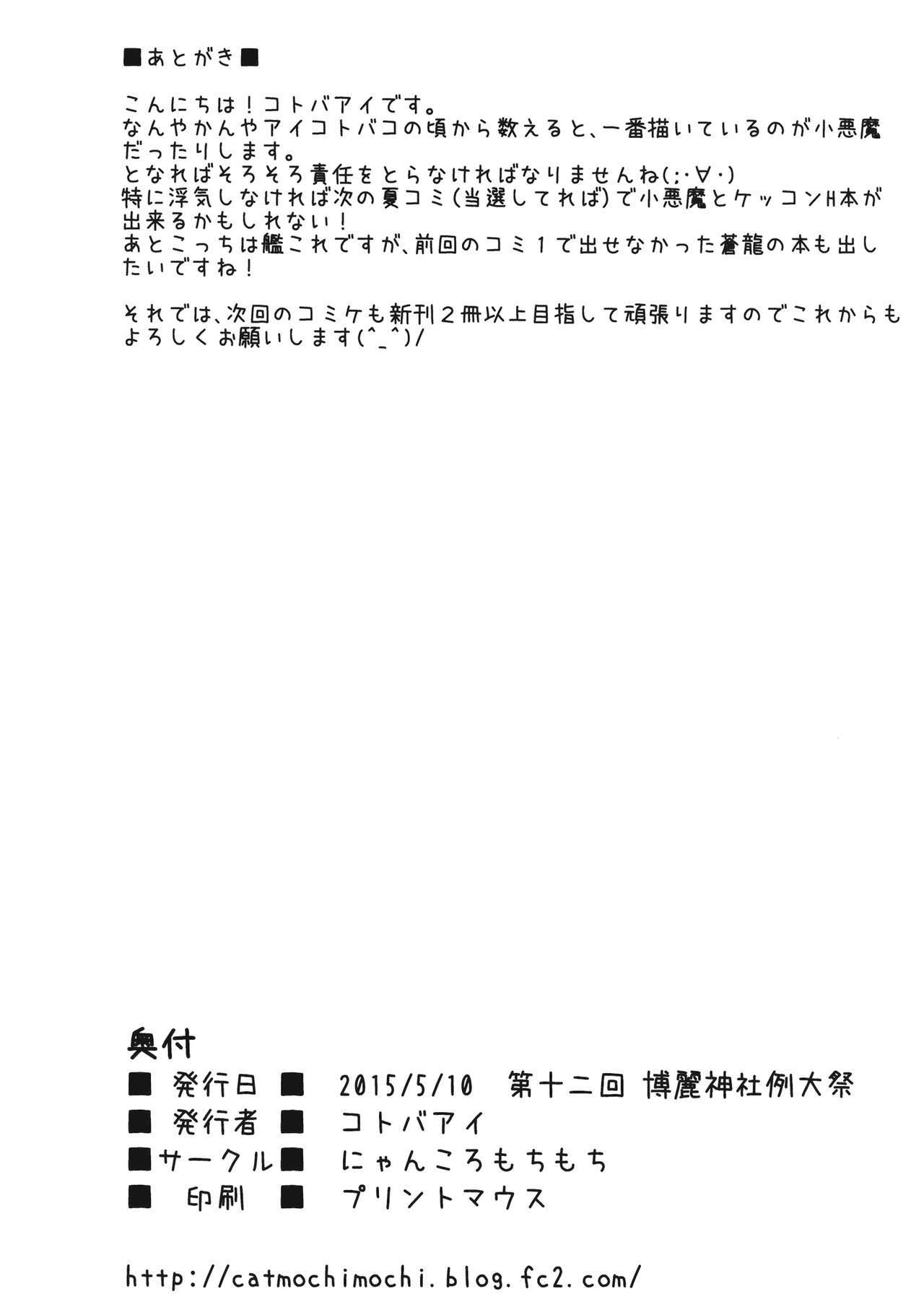 (Reitaisai 12) [Nyankoromochimochi (Kotoba Ai)] Konomama dewa Koakuma to Deki Kon Shite Shimau!? (Touhou Project)