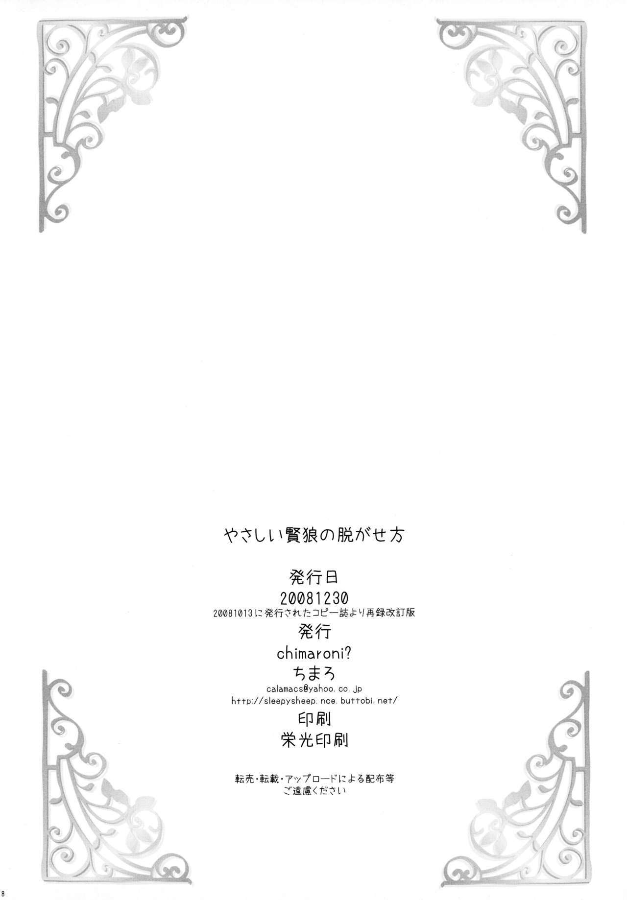(C75) [Chimaroni? (Chimaro)] Yasashii Kenrou no Nugasekata (Spice and Wolf)