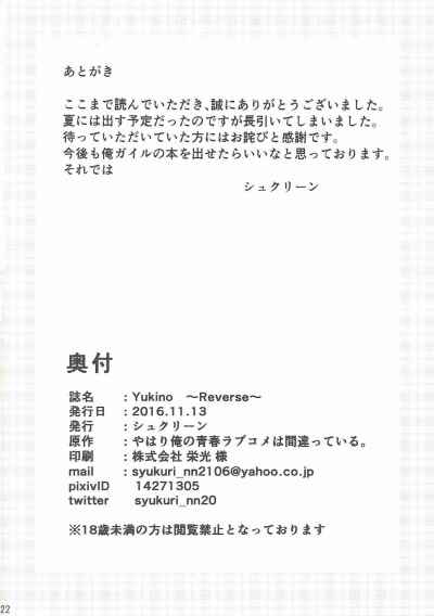 (SC2016 Autumn) [Syukurin (Syukurin)] Yukino ~Reverse~ (Yahari Ore no Seishun Love Come wa Machigatteiru.)