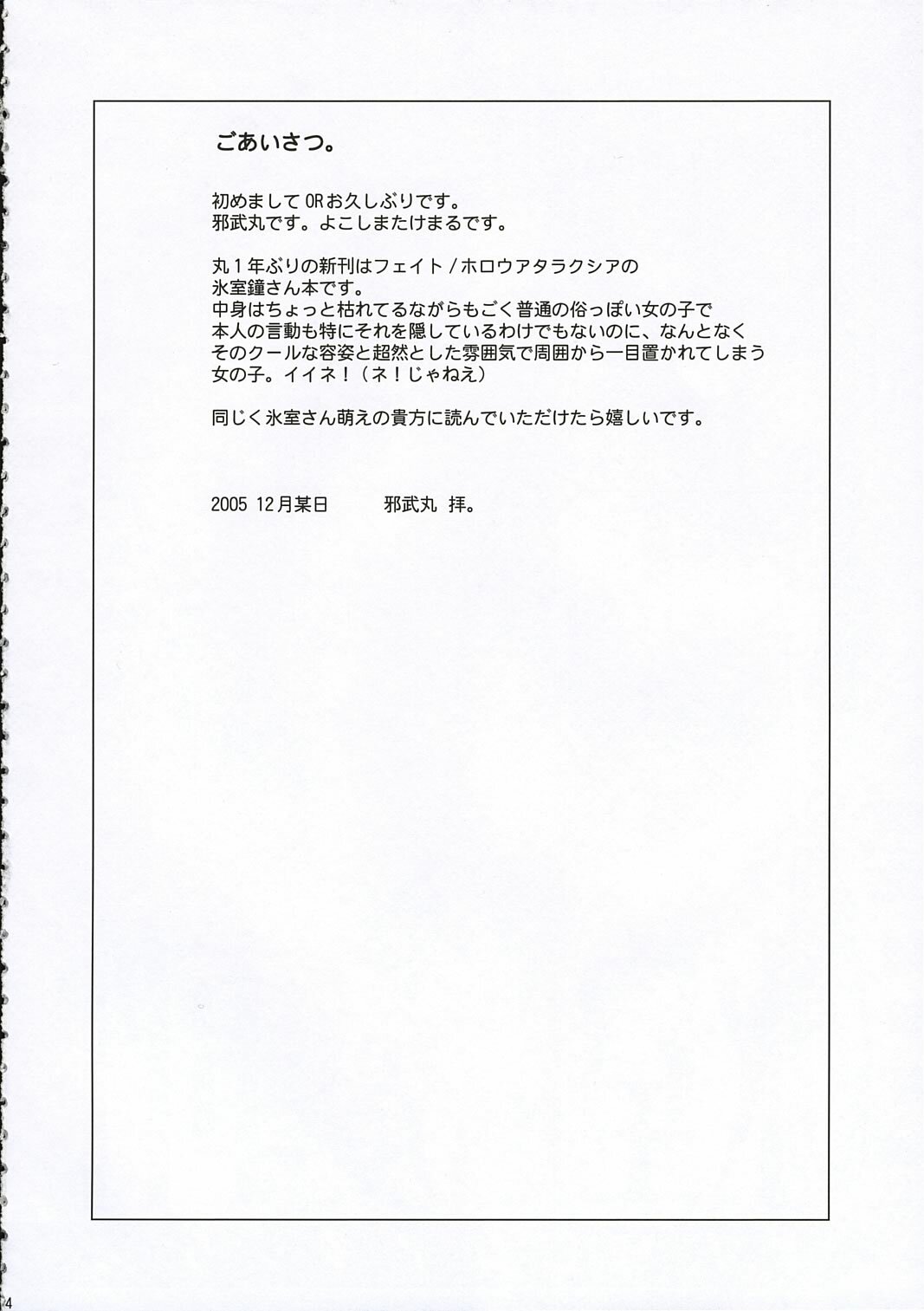 (C69) [YOKOSHIMAYA. (Yokoshima Takemaru)] Himuro Renai Jiken (Fate/stay night)