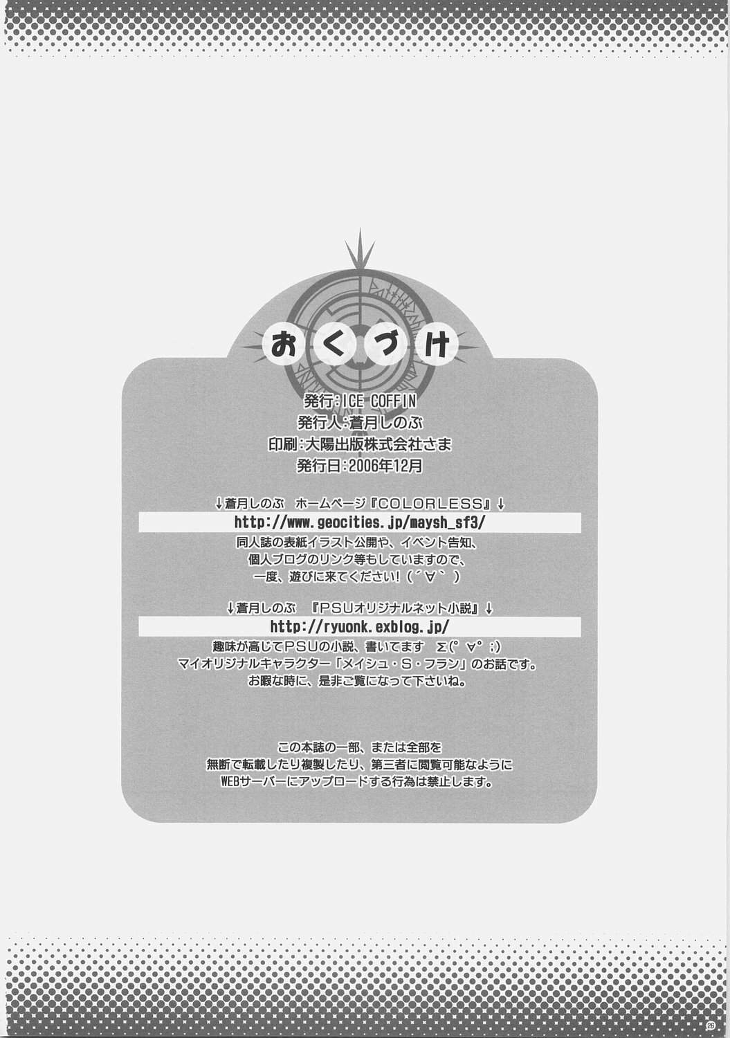 (C71) [ICE COFFIN (Aotsuki Shinobu)] Pannon no Zakkaya-san (Phantasy Star Universe)
