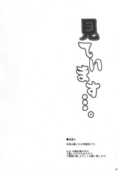 (C88) [Dokomademo Aoi Sora ni Ukabu Niku. (Nikusoukyuu.)] Mite Imasu.... (Kantai Collection -KanColle-) [English]