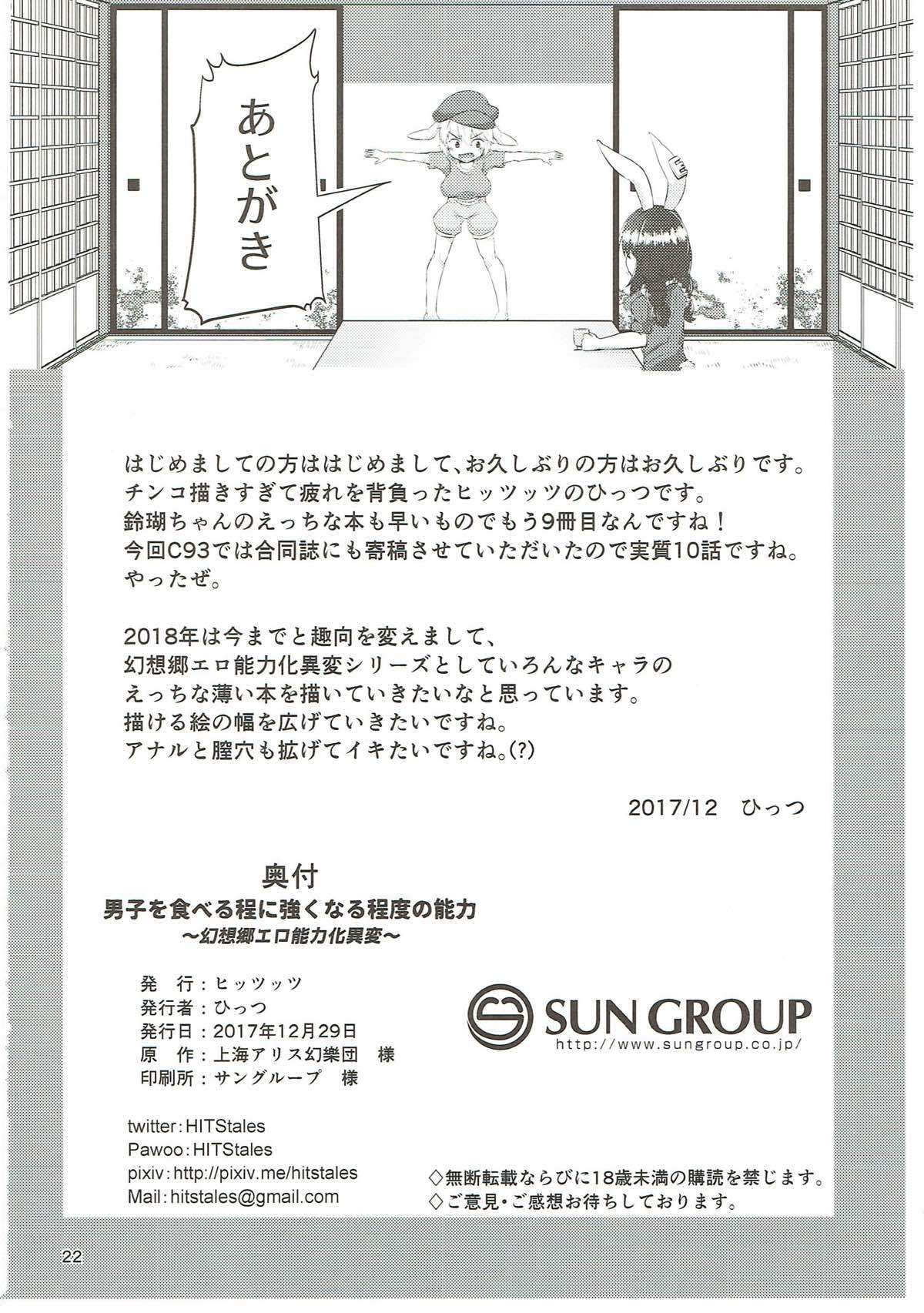 (C93) [Hitstales (Hits)] Danshi o Taberu Hodo ni Tsuyoku Naru Teido no Nouryoku ~Gensoukyou Ero Nouryokuka Ihen~ (Touhou Project)