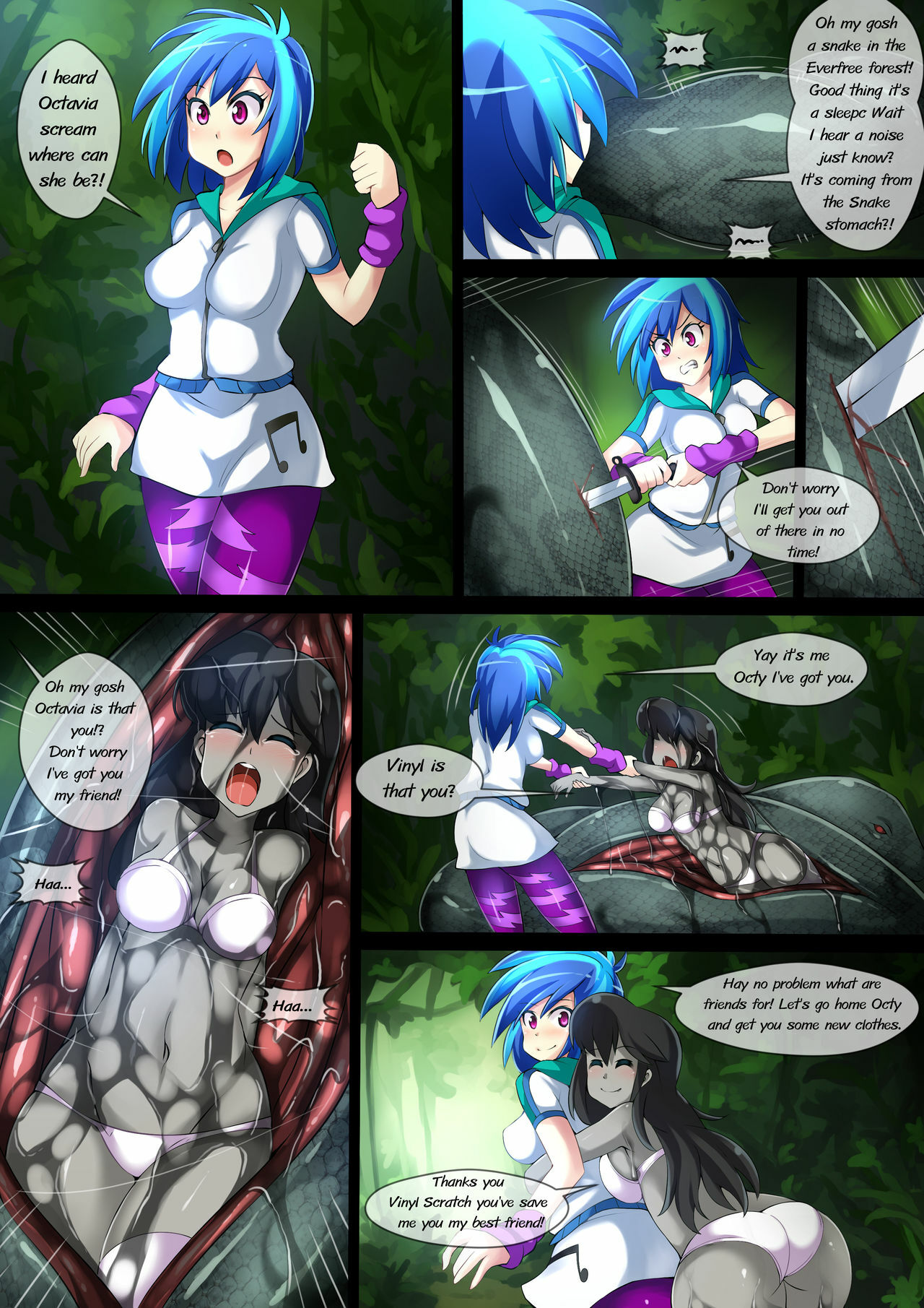 Snake vore of Octavia and Vinyl Scratch