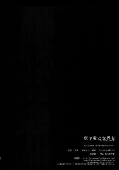 (Super ROOT4to5 2018) [Fukagawa (Tsuzurao Kaya)] Boku wa Kimi to Sekai o (Fate/Grand Order)