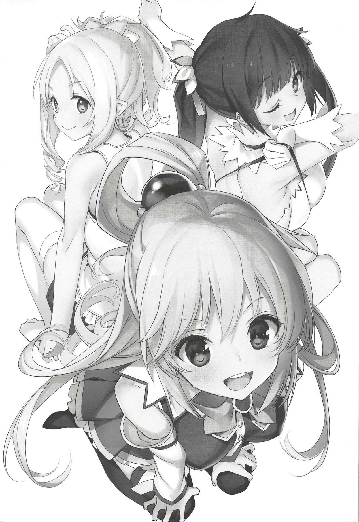 (COMIC1☆13) [WASABI (Tatami)] Elf! Megami!! Kami!!! (Kono Subarashii Sekai ni Syukufuku o!, Dungeon ni Deai o Motomeru no wa Machigatteiru Darou ka, Eromanga Sensei)