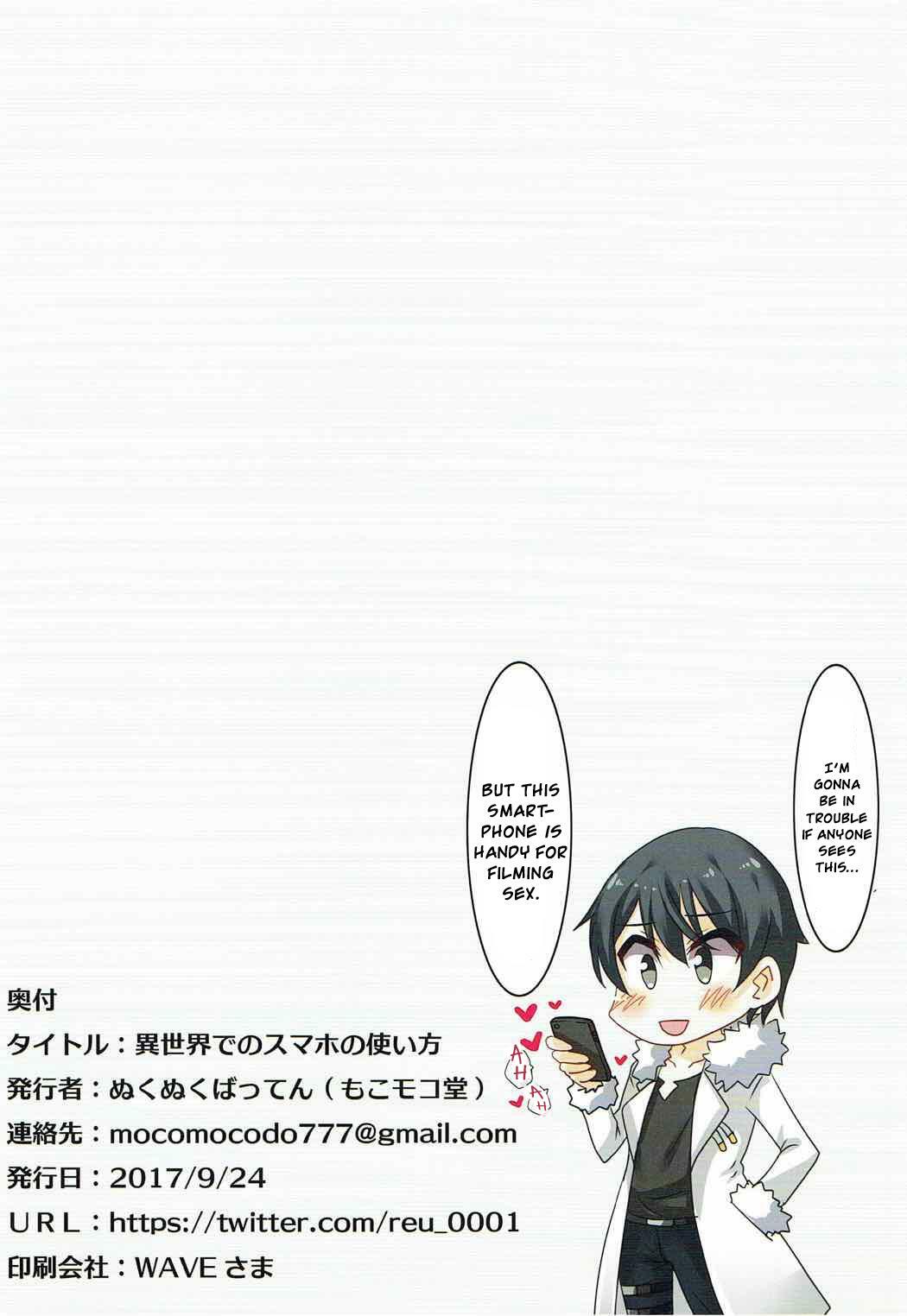 (SC2017 Autumn) [mocomocodo (Nukunuku Batten)] Isekai de no Smapho no Tsukaikata (Isekai wa Smartphone to Tomo ni.) [English] [CrowKarasu]
