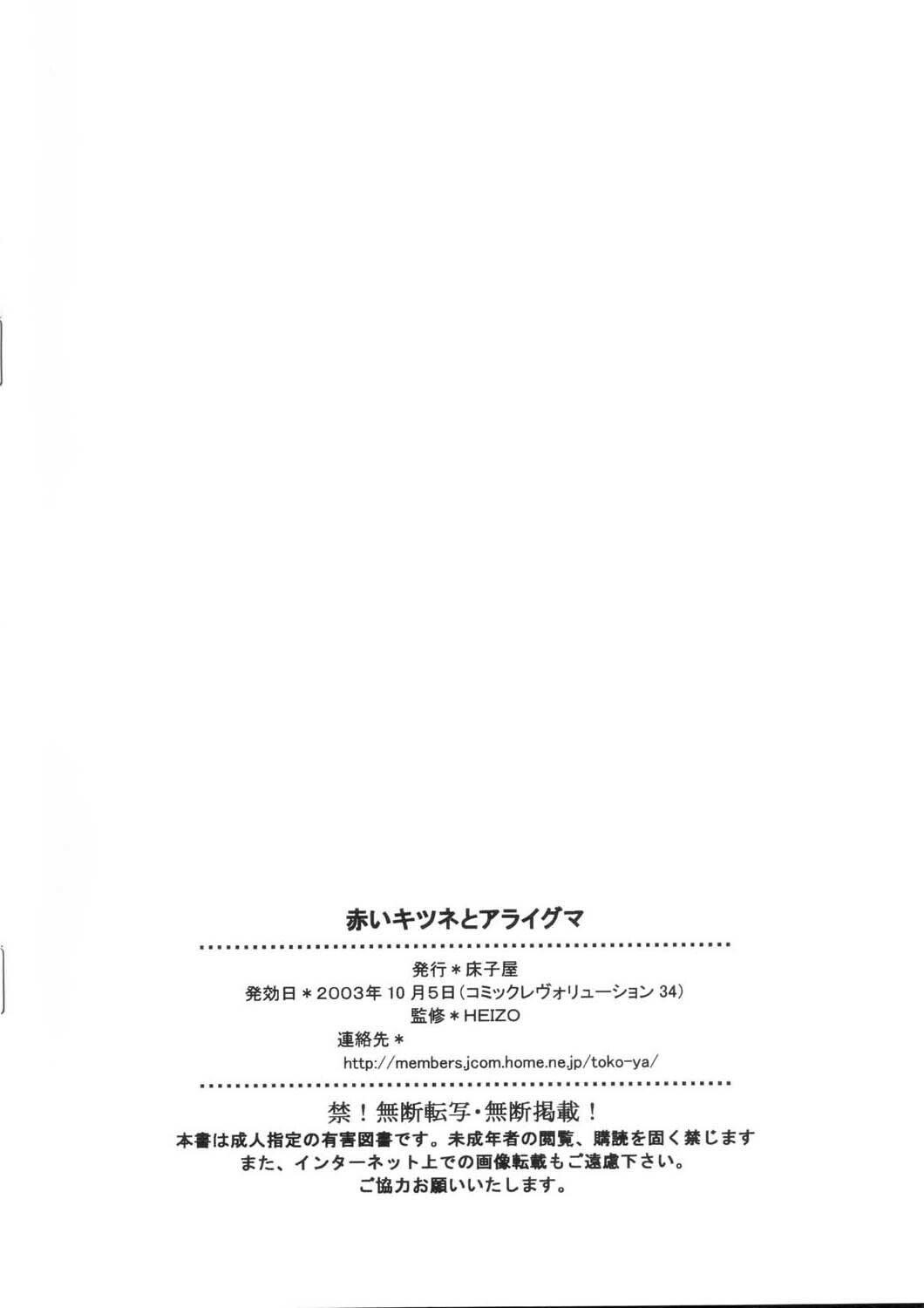 (CR34) [Toko-ya (Kitoen)] Akai Kitsune to Araiguma