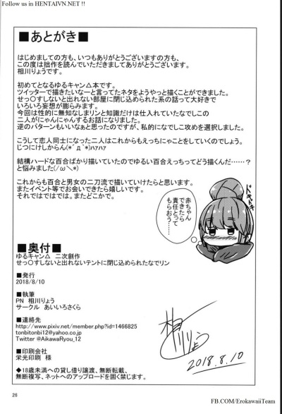 (C94) [Aiirosakura (Aikawa Ryou)] Sex Shinai to Derenai Tent ni Tojikomerareta NadeRin (Yuru Camp) [Vietnamese Tiếng Việt] [Erokawaii Team]