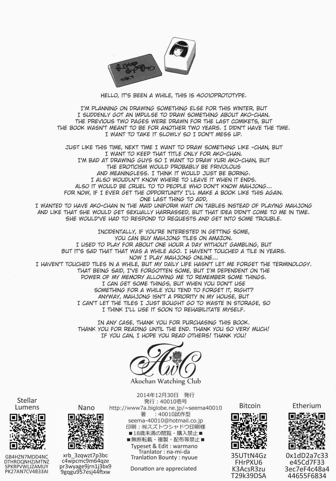 (C87) [40010 1-GO (Shimanto Shisakugata)] Akochan Watching Club (Saki) [English]