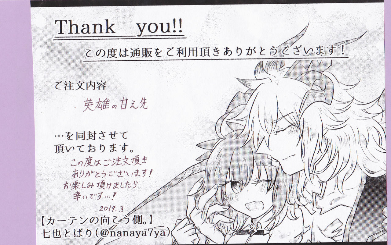 (Ou no Utsuwa Grail Oath Sapporo 3) [Curtain no Mukougawa. (Nanaya Tobari)] Eiyuu no Amaesaki (Fate/Grand Order)