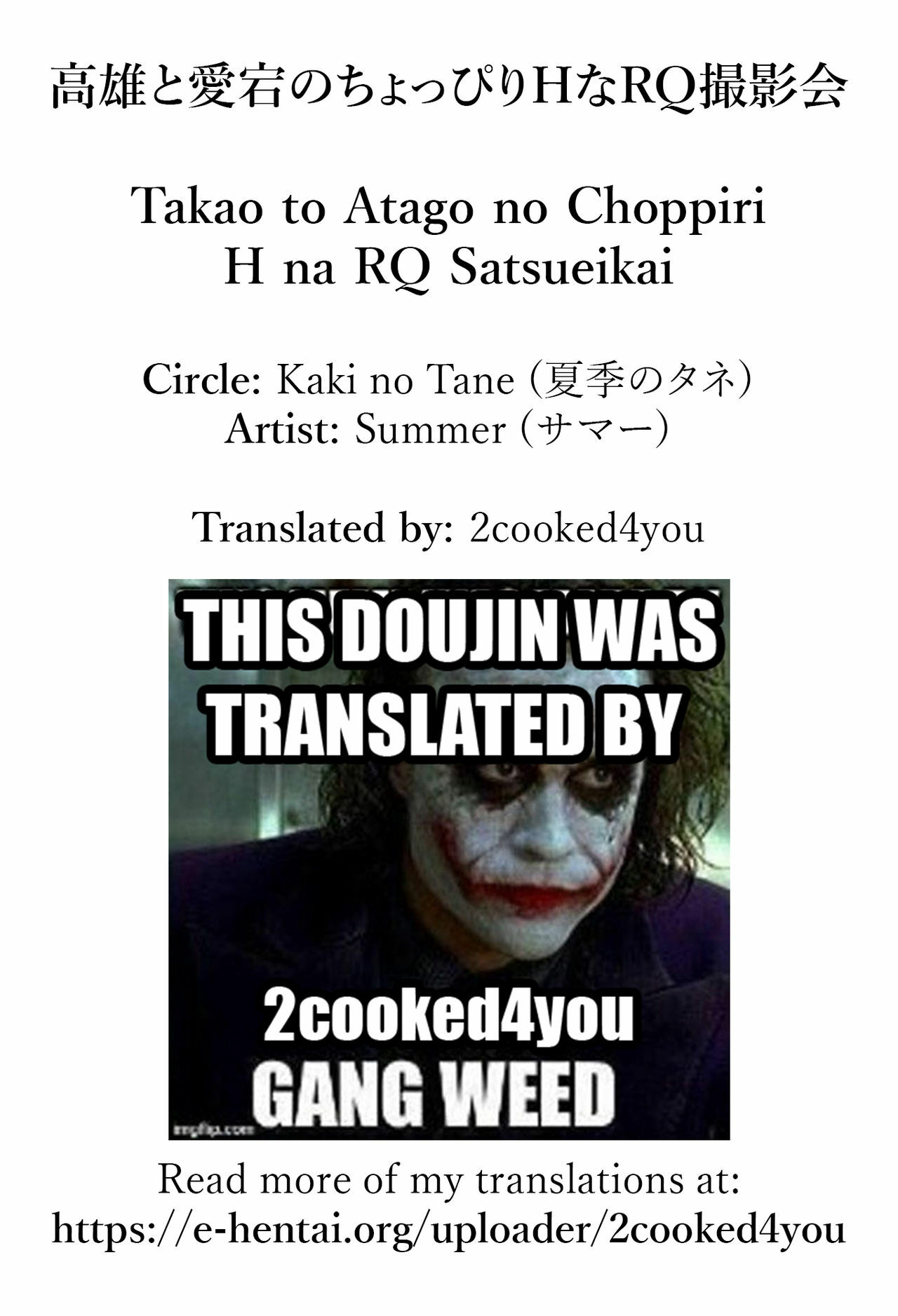 (COMIC1☆15) [Kaki no Tane (Summer)] Takao to Atago no Choppiri H na RQ Satsueikai (Azur Lane) [English] [2cooked4you]