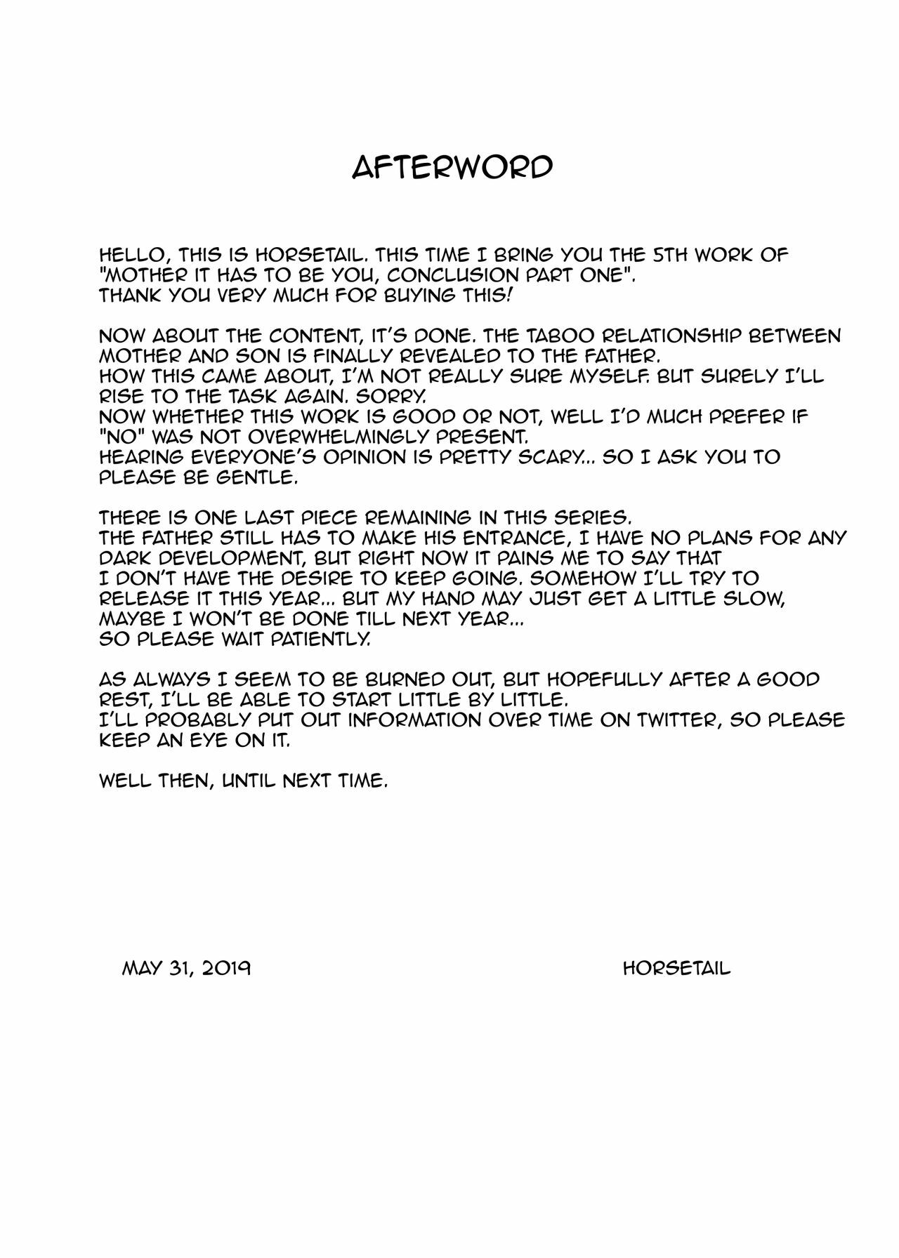 [Horsetail] Kaa-san Janakya Dame Nanda!! 5 ~Kanketsuhen Zenpen~| Mother, It Has to Be You ~Conclusion Part 1~[English][Amoskandy]