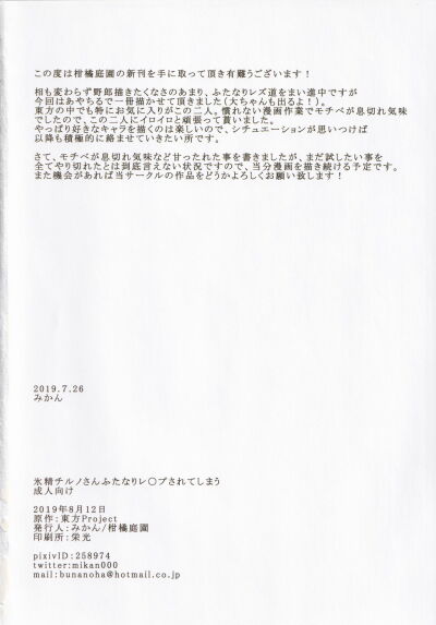 (C96) [Kankituteien (Mikan)] Hyoushou Cirno-san Futanari Rape Sarete Shimau (Touhou Project)