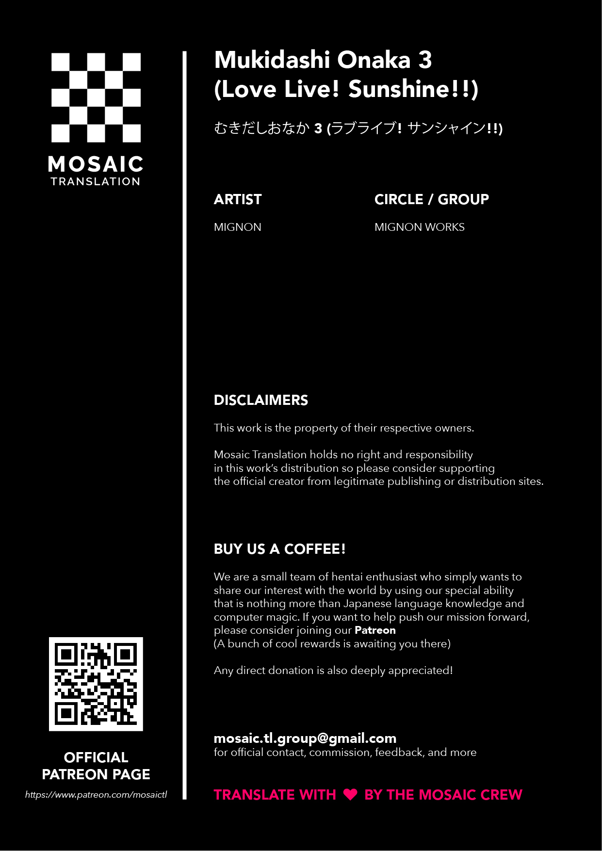 (C97) [MIGNON WORKS (mignon)] Mukidashi Onaka 3 (Love Live! Sunshine!!) [English] [Mosaic Translations]
