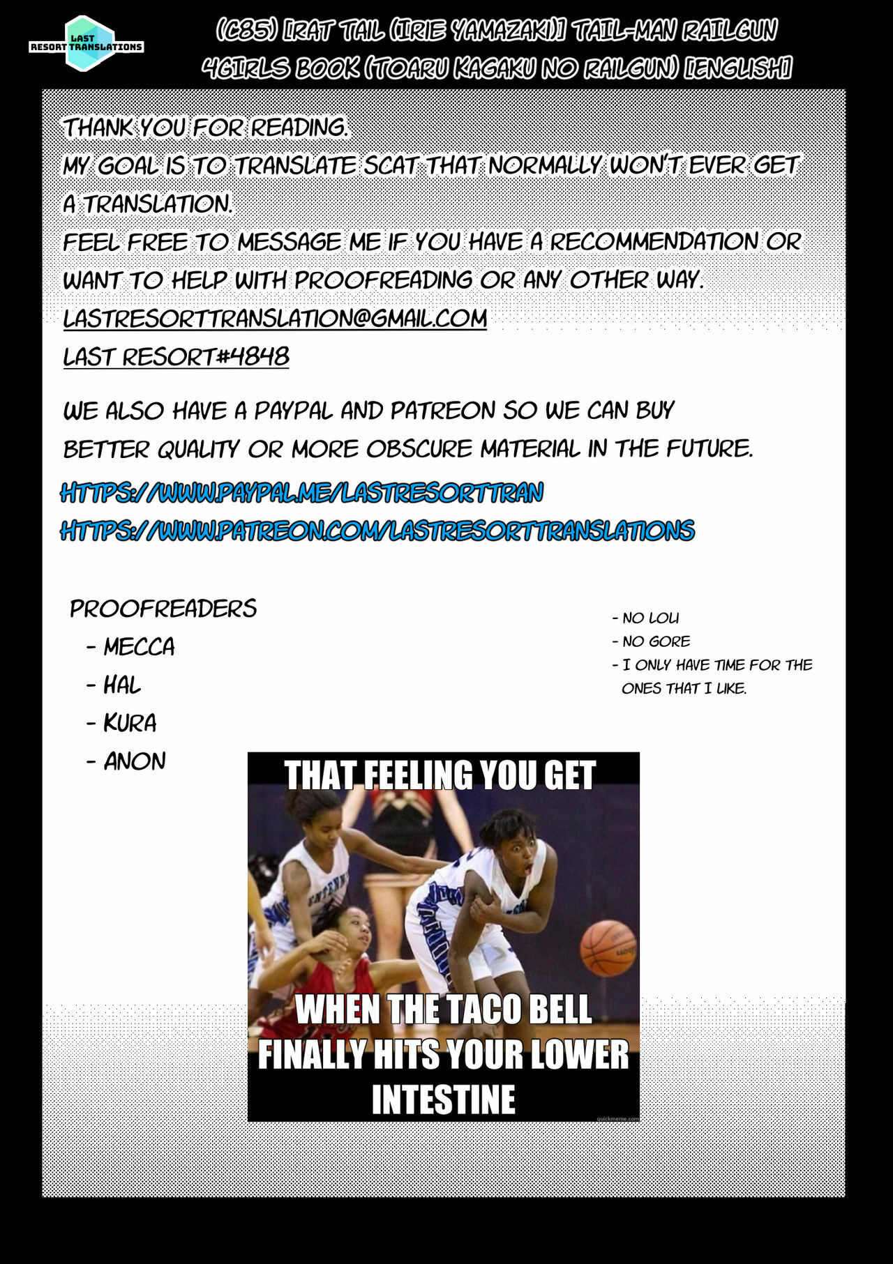 (C85) [Rat Tail (Irie Yamazaki)] TAIL-MAN RAILGUN 4GIRLS BOOK (Toaru Kagaku no Railgun) [English]