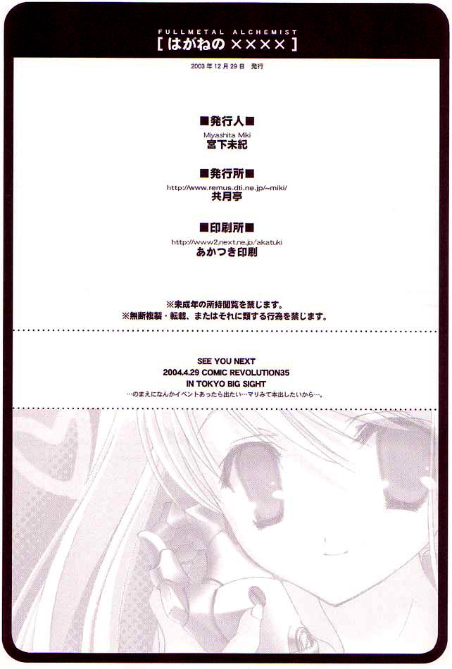 (C65) [Kyougetsutei (Miyashita Miki)] Hagane No XXXX (Fullmetal Alchemist) [English] [DejaVu]