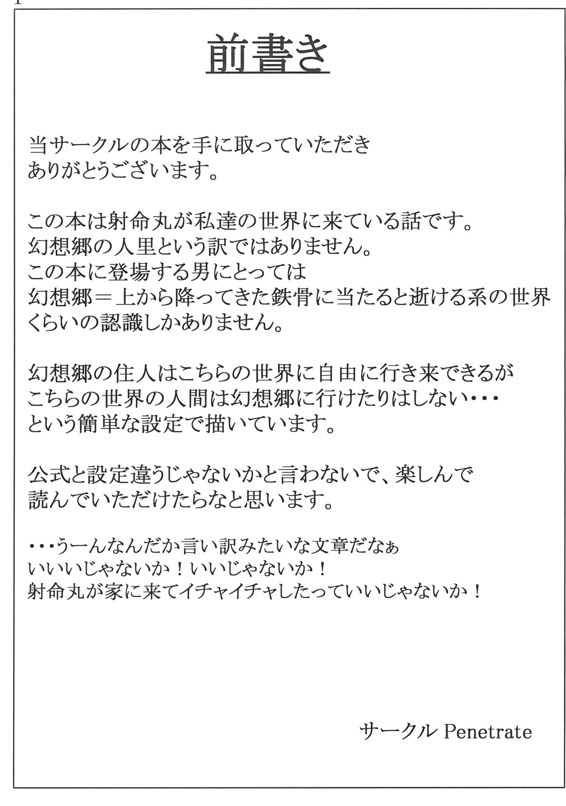 (C76) [Penetrate (Reiha)] Shameimaru Aya no Homestay (Touhou)
