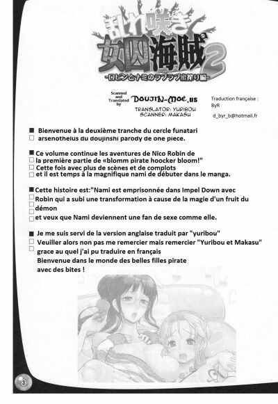 (Futaket 6) [Arsenothelus (Rebis)] Midarezaki Joshuu Kaizoku 2 -Robin to Nami no Love Love Mitsu Shibori hen- (One Piece) [French] [Hentaifr] [Incomplete]