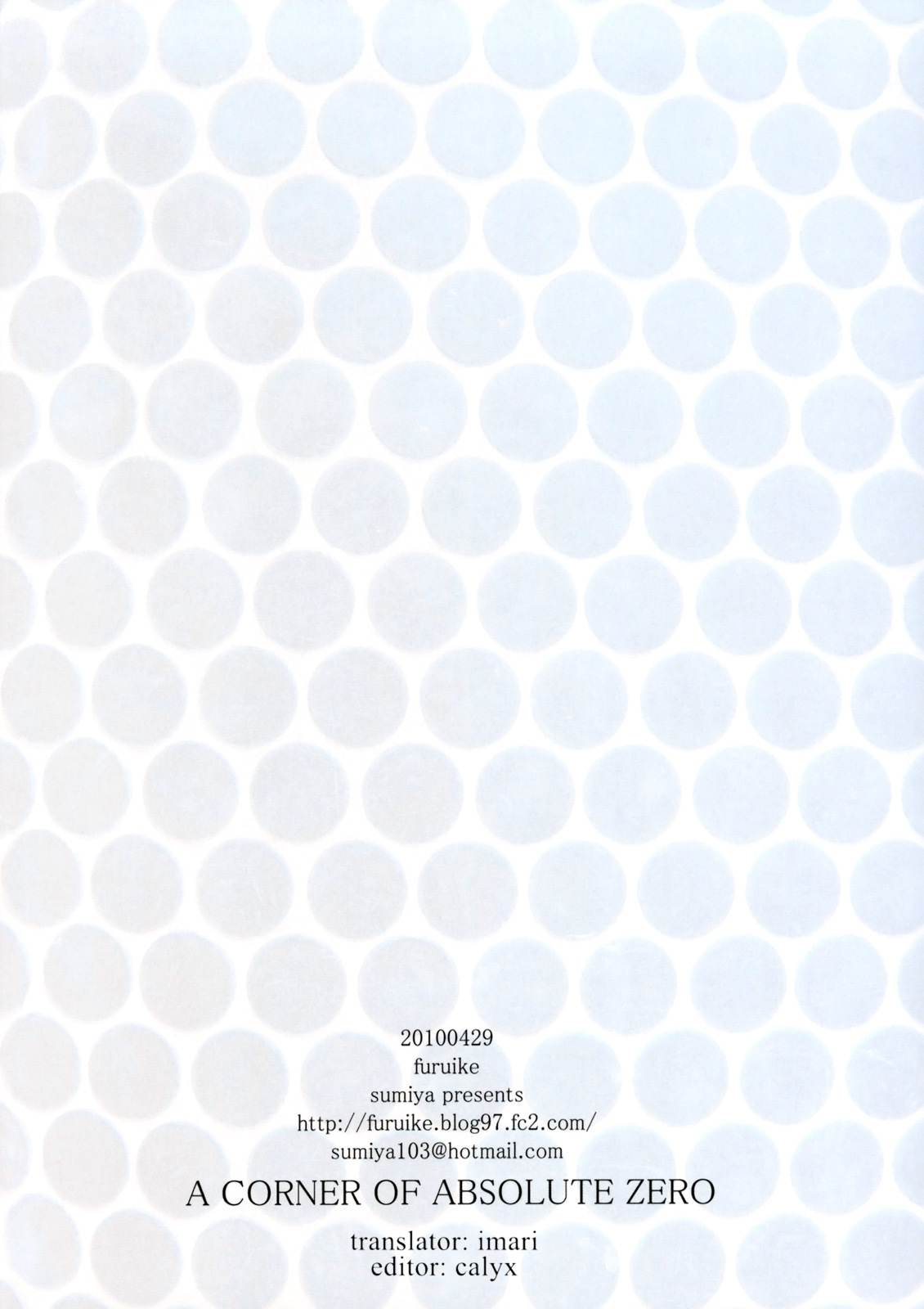 (COMIC1☆4) A CORNER OF ABSOLUTE ZERO (Neon Genesis Evangelion) [English] =Imari+Calyx=