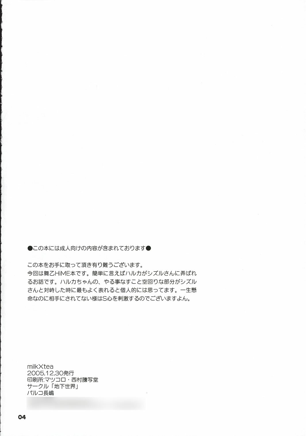 (C69) [Chika Sekai (Palco Nagashima)] Milk x Tea (Mai-Otome)