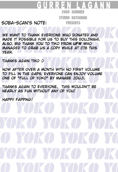 (C76) [Studio Katsudon (Manabe Jouji)] Yoko ni Manpuku!! | Full of Yoko! (Tengen Toppa Gurren Lagann) [English] [Soba-Scans]
