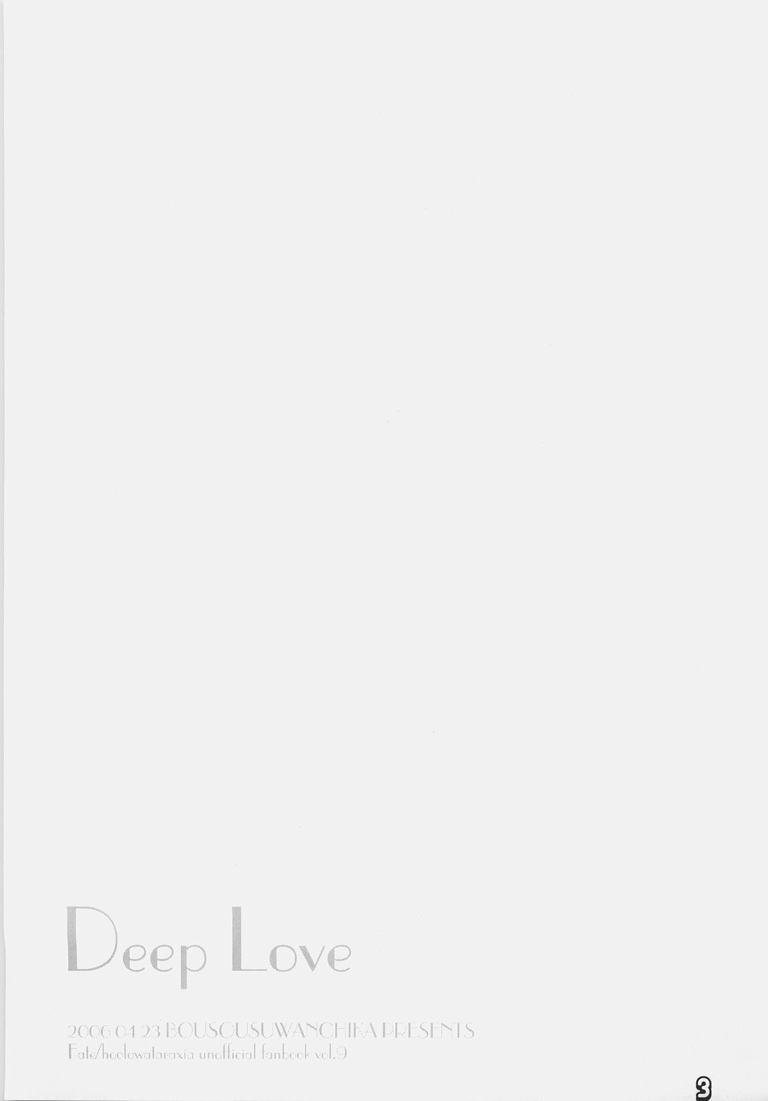 (SC31) [Bousou Suwanchika (Katouchan-ta)] Deep Love (Fate/hollow ataraxia)