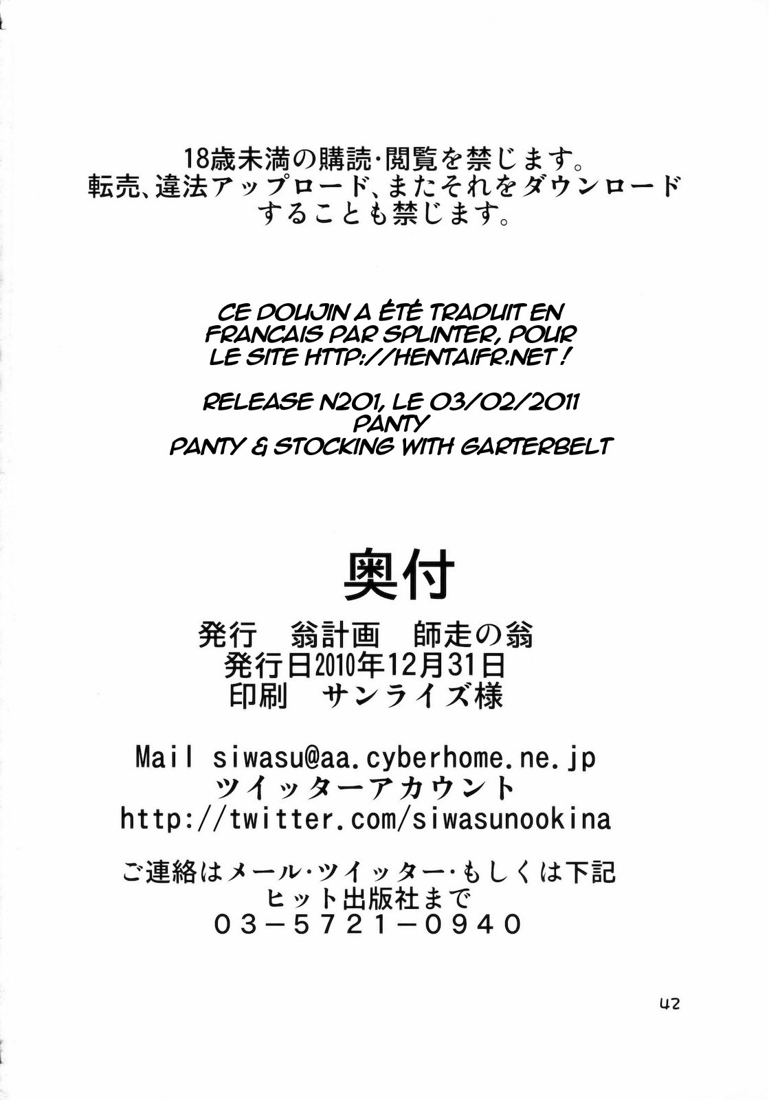 (C79) [Okina Keikaku (Shiwasu no Okina)] PANTY (Panty & Stocking with Garterbelt) [French] [HFR]