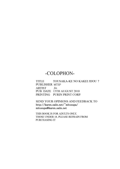 (C78) [MTSP (Jin)] Tohsaka-ke no Kakei Jijou 7 (Fate/stay night) [English] [Ayane]