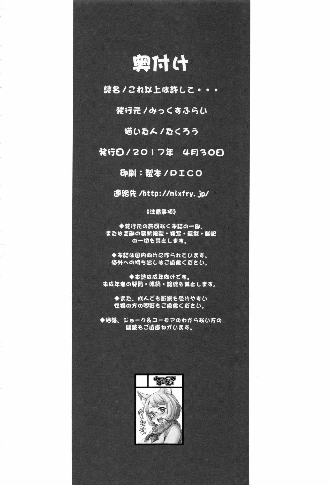 (COMIC1☆11) [Mix Fry (Takurou)] Kore Ijou wa Yurushite... [English] {darknight}