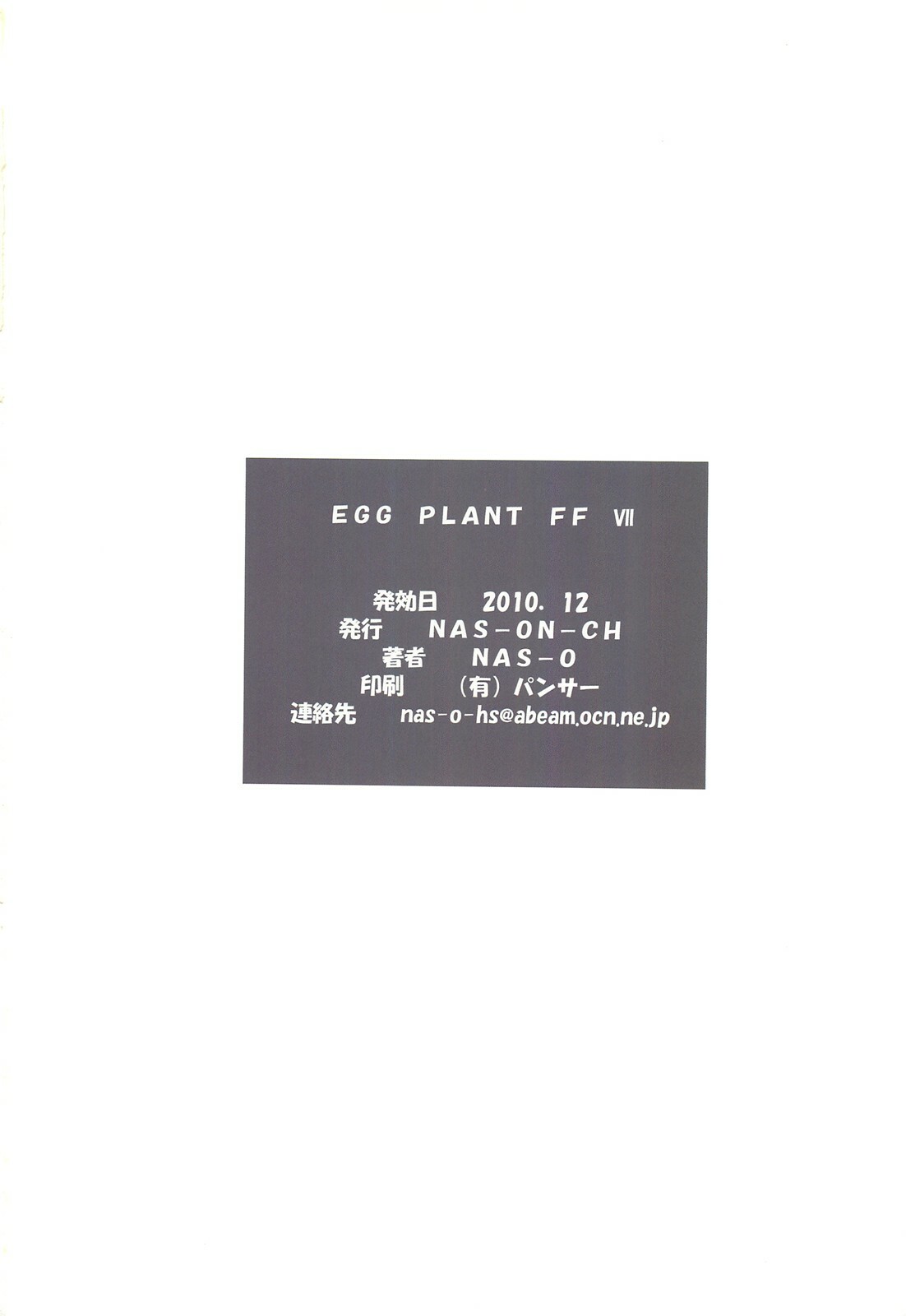 (C79) [NAS-ON-CH (NAS-O)] EGG PLANT FFVII (Final Fantasy VII) [English] =Little White Butterflies=