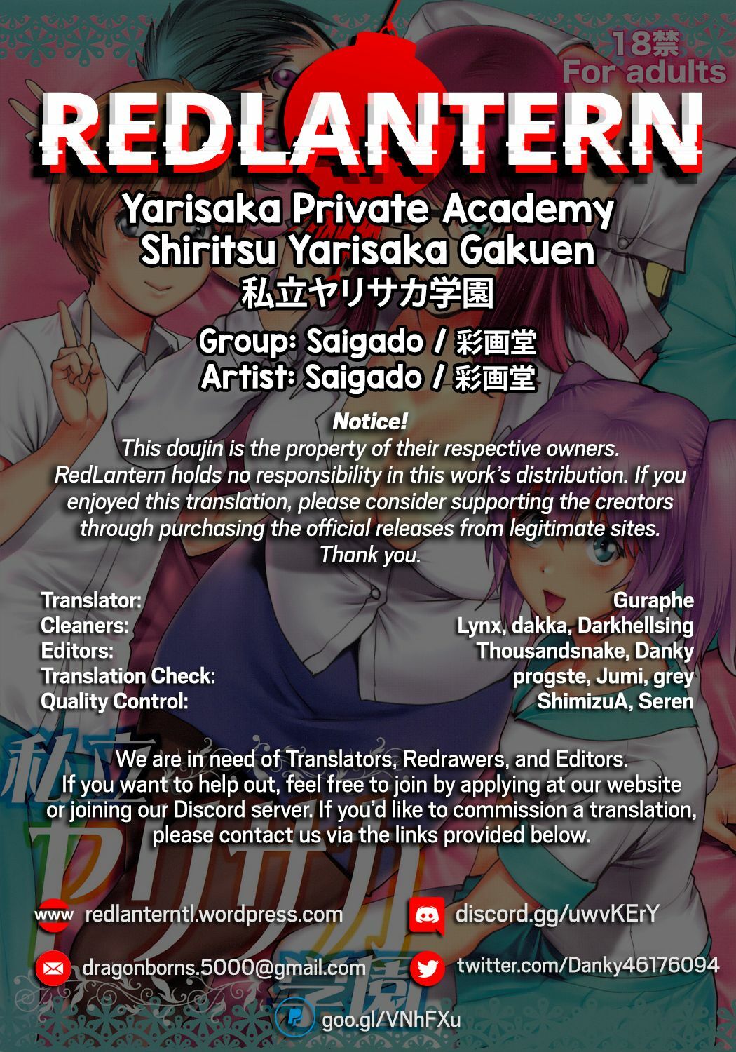(C93) [Saigado (Saigado)] Shiritsu Yarisaka Gakuen | Yarisaka Private Academy [English] [Redlantern]