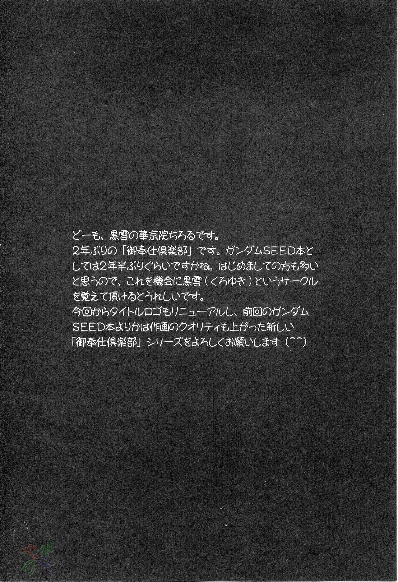 (C69) [Kuroyuki (Kakyouin Chiroru)] Gohoushi Club 5 (Kidou Senshi Gundam SEED DESTINY) [English]