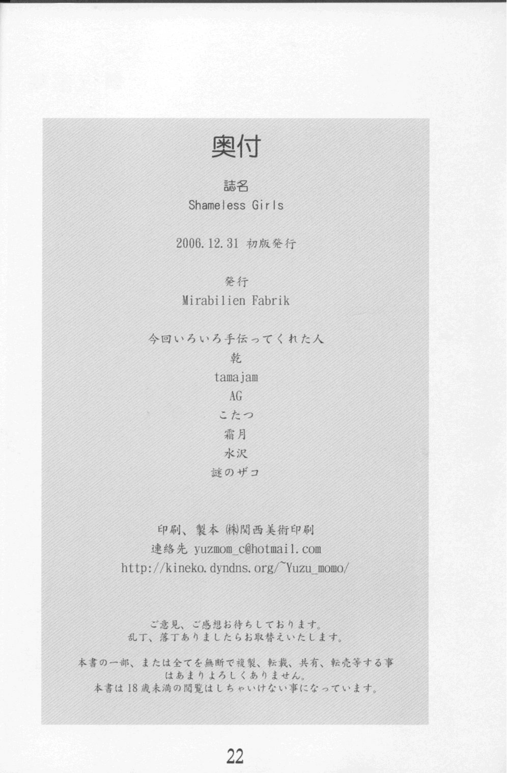 (C71) [Mirabilien Fabrik (Yuzu Momo)] Shameless Girls (Touhou Project)