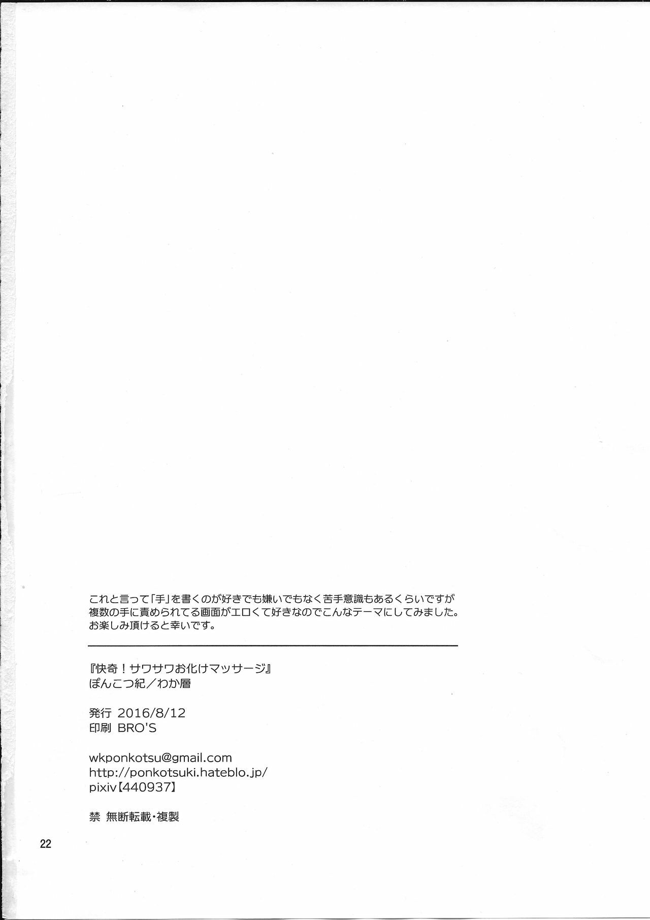 (C90) [Ponkotsu-ki (Wakasou)] Kaiki! Sawasawa Obake Massage [English] [Yuuta's Blog]