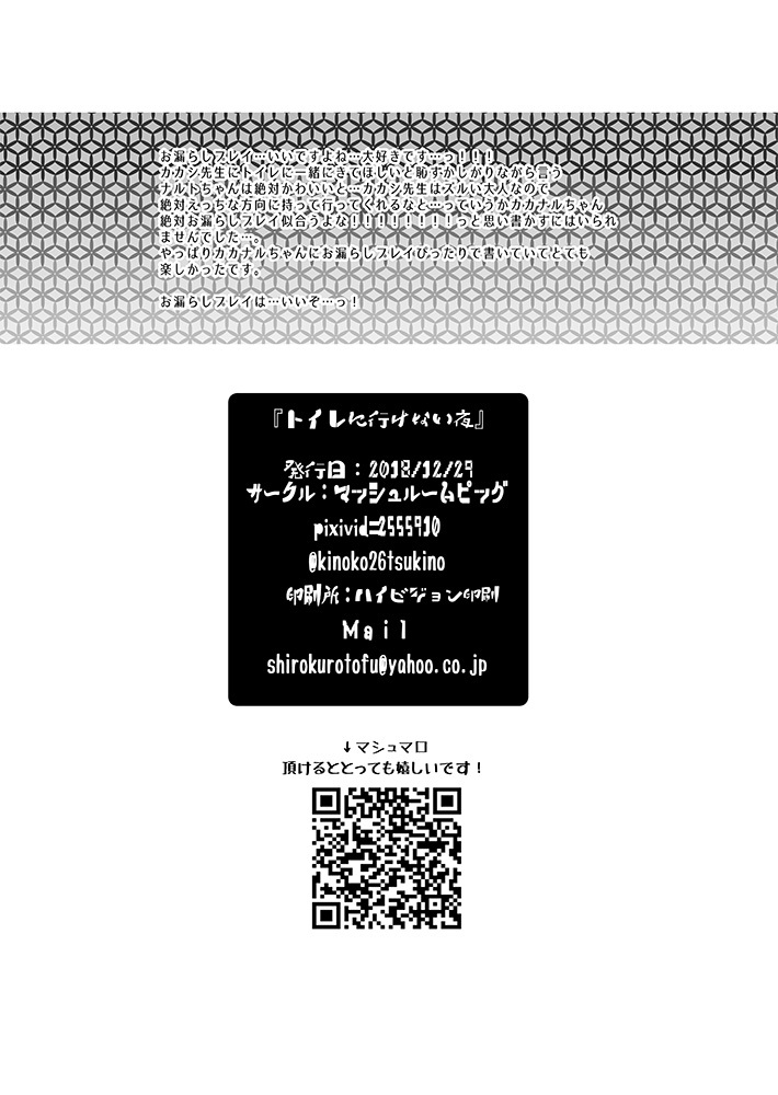 [Mushroom Pig (Tsukino Wakuma)] Toile ni Ikenai Yoru (Naruto) [Digital]
