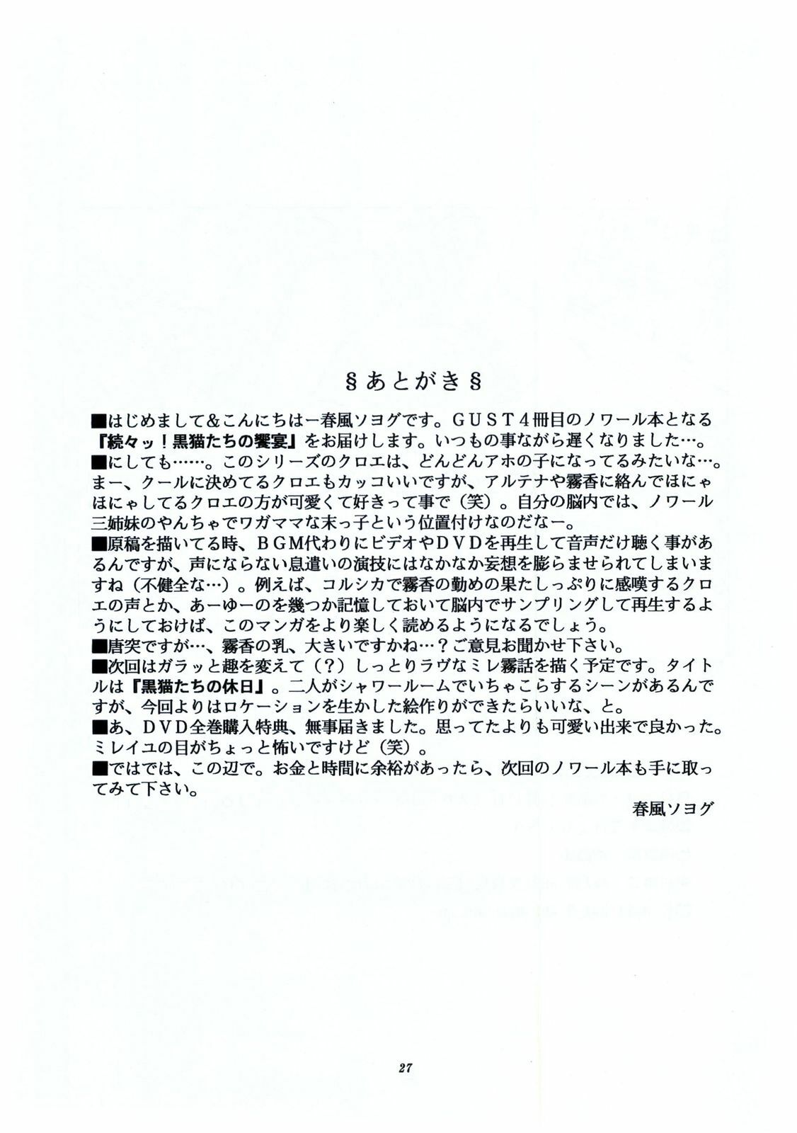 (Futaket) [GUST (Harukaze Soyogu)] Zokuzoku! Kuronekotachi no Kyouen (Noir)