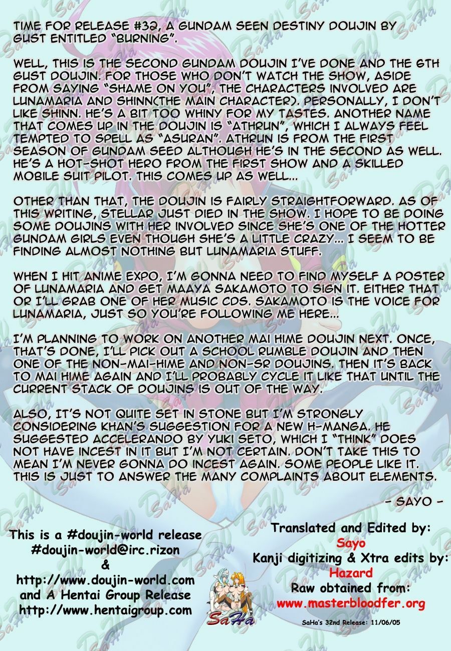 (C67) [GUST (Harukaze Soyogu)] BURNING!! (Mobile Suit Gundam Seed Destiny) [English] [SaHa]