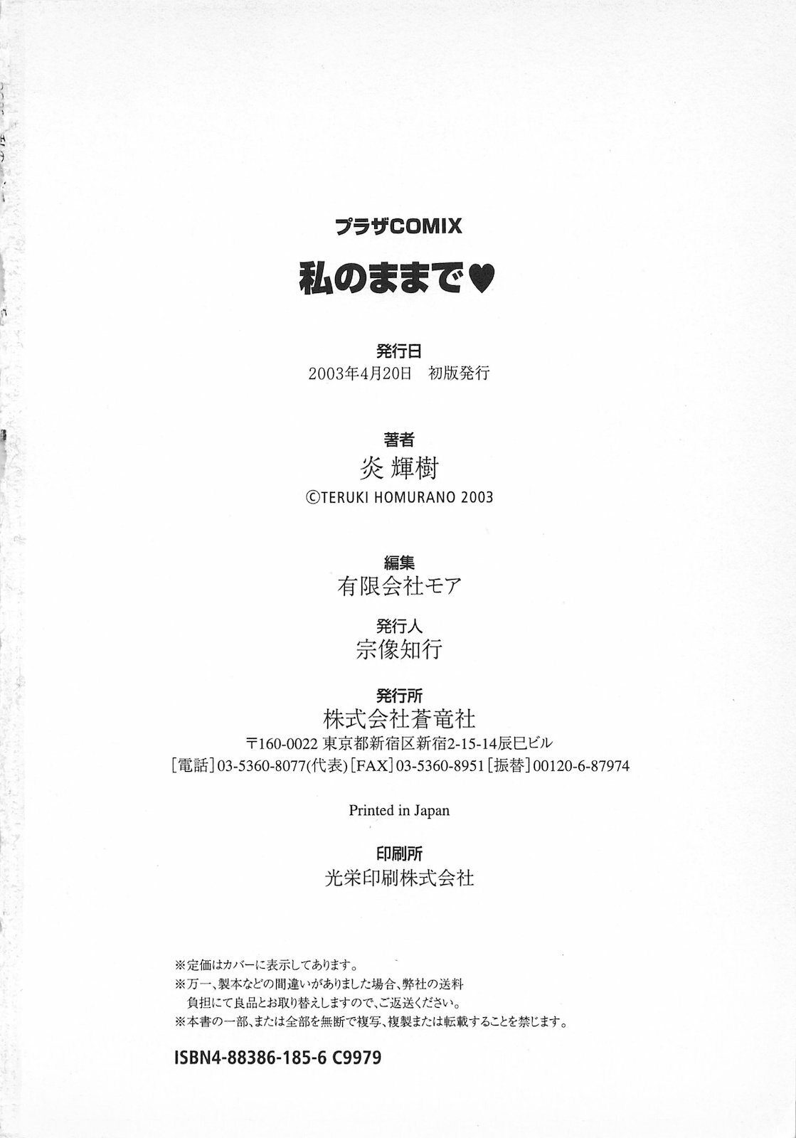 [Homurano Teruki] Watashi no Mamade