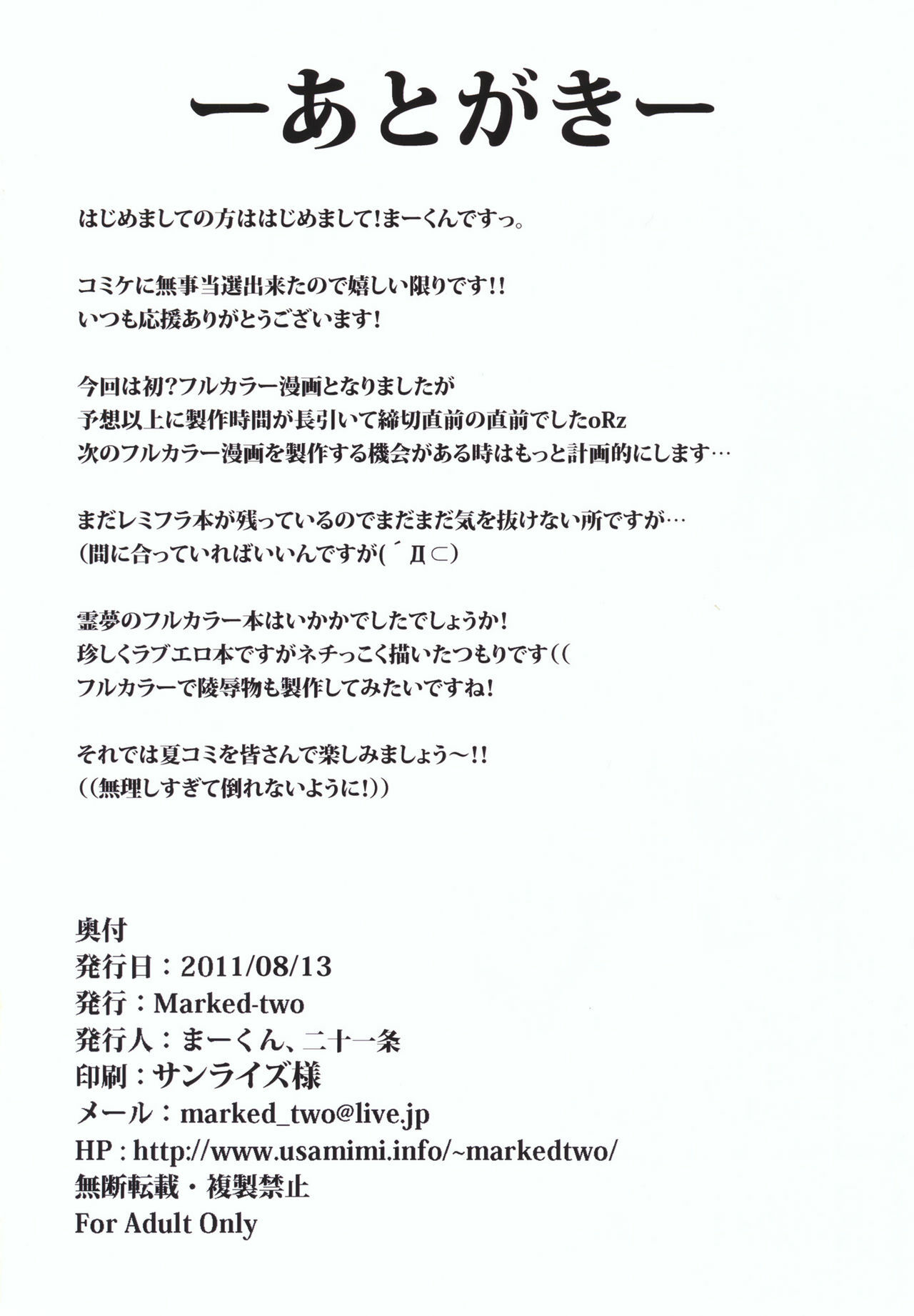 (C80) [Marked-two (Maa-kun)] Lovely Reimu (Touhou Project) [English]