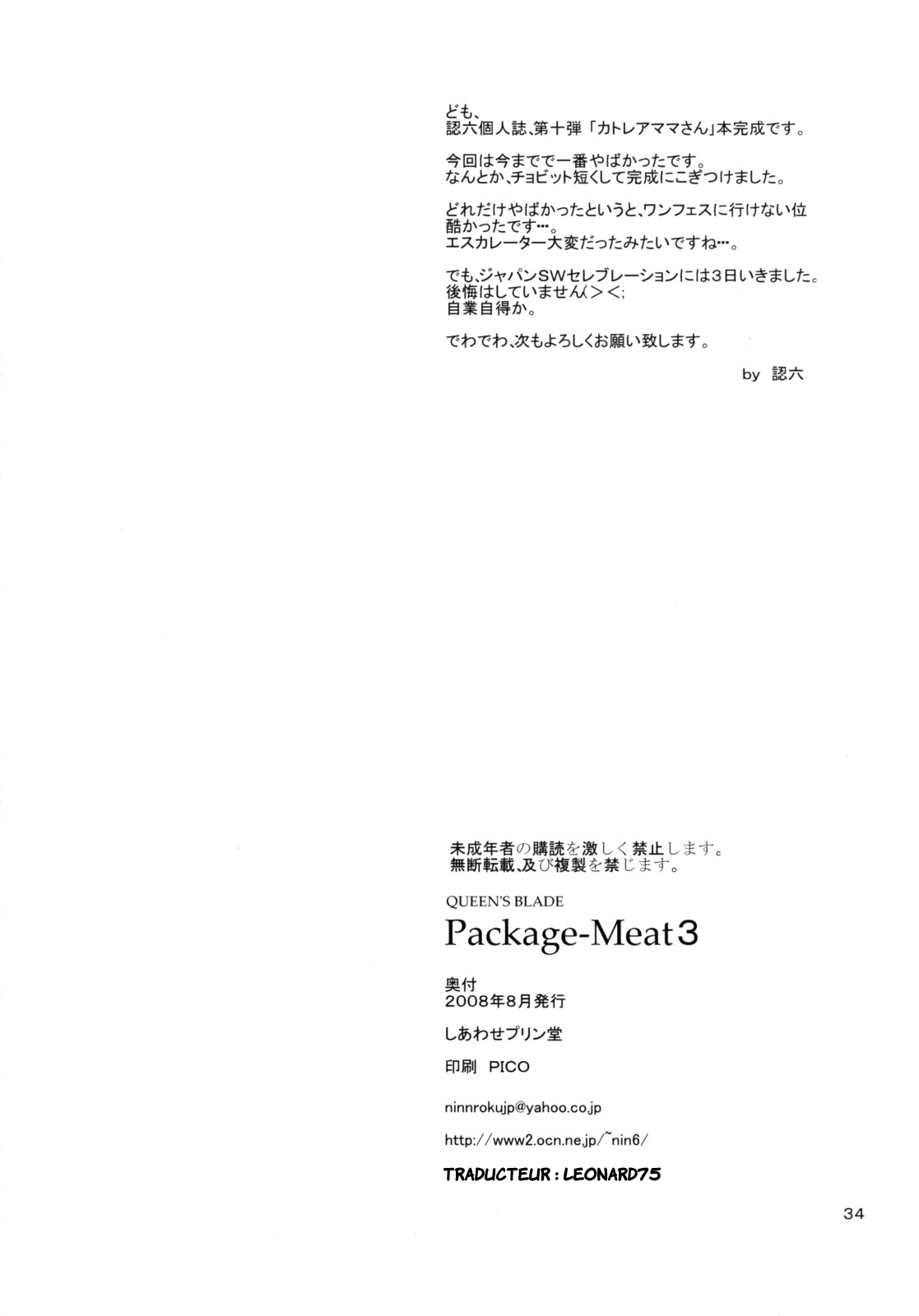 (C74) [Shiawase Pudding Dou (Ninroku)] Package-Meat 3 (Queen's Blade) [French] [leonard75]