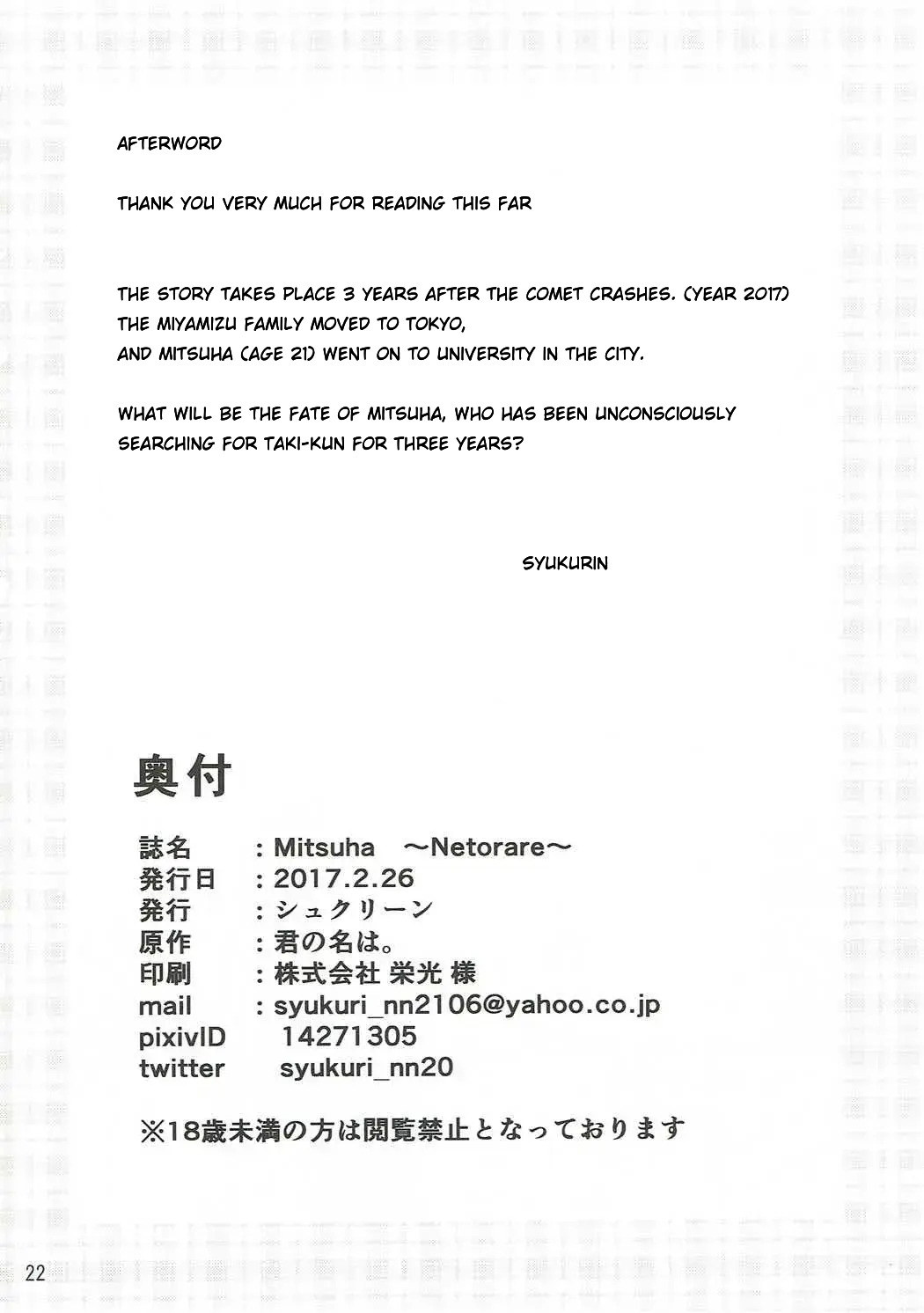 (SC2017 Winter) [Syukurin] Mitsuha ~Netorare~ (Kimi no Na wa.) [English] [Colorized]