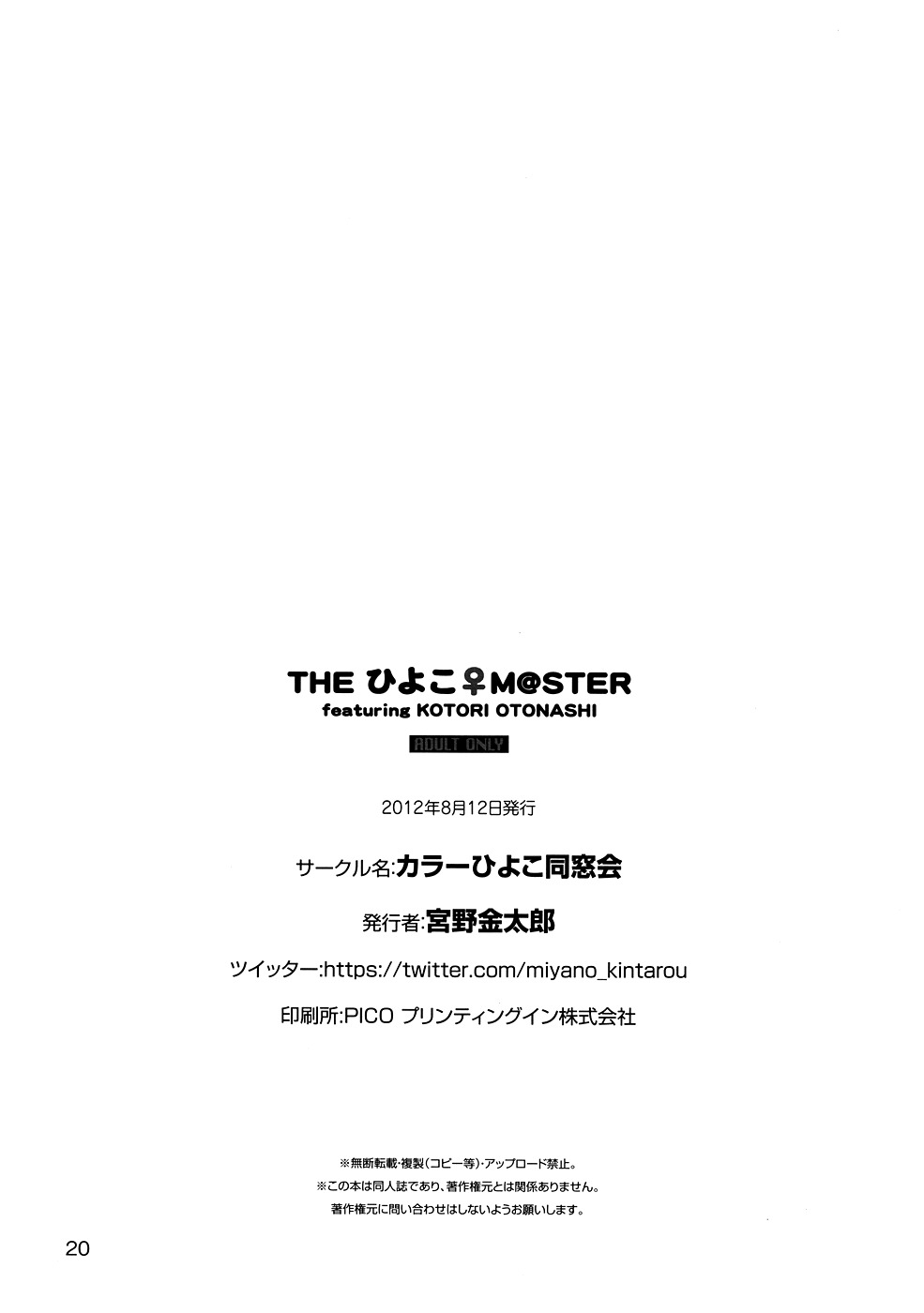(C82) [Color Hiyoko Dousoukai (Miyano Kintarou)] THE HIYOKO M@STER featuring KOTORI OTONASHI (THE IDOLM@STER) [English] [Y2Ryoko + Afro]