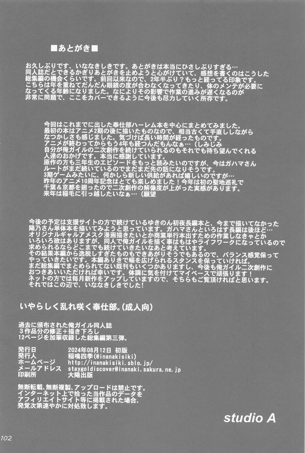 (C104) [studio A (Inanaki Shiki)] Iyarashiku Midaresaku Houshi-bu. (Yahari Ore no Seishun Love Come wa Machigatteiru.)