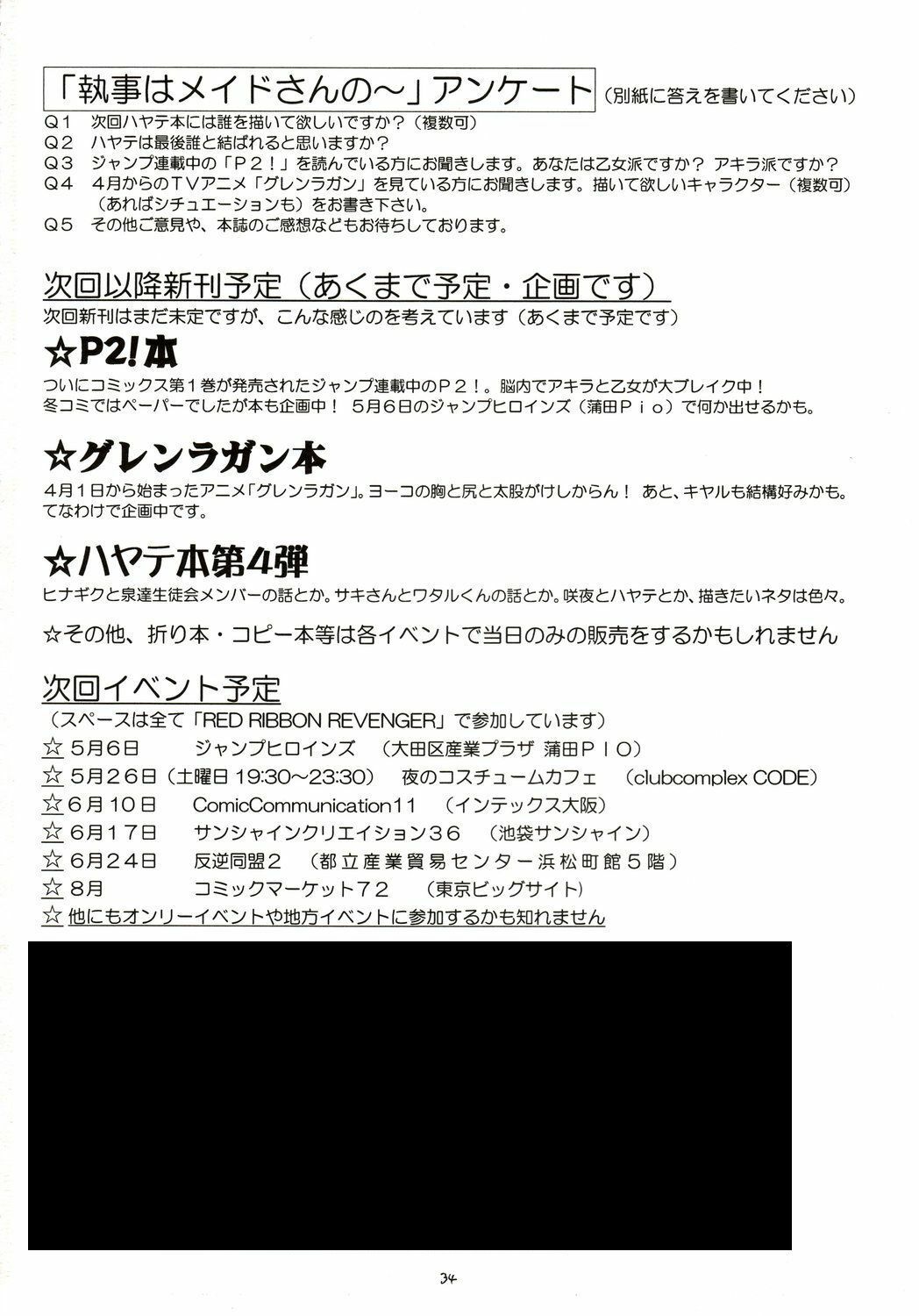 (COMIC1) [RED RIBBON REVENGER (Hayama, Makoushi, Taireru)] Shitsuji ha Meidosan no Yume wo Miruka? (Hayate no Gotoku)