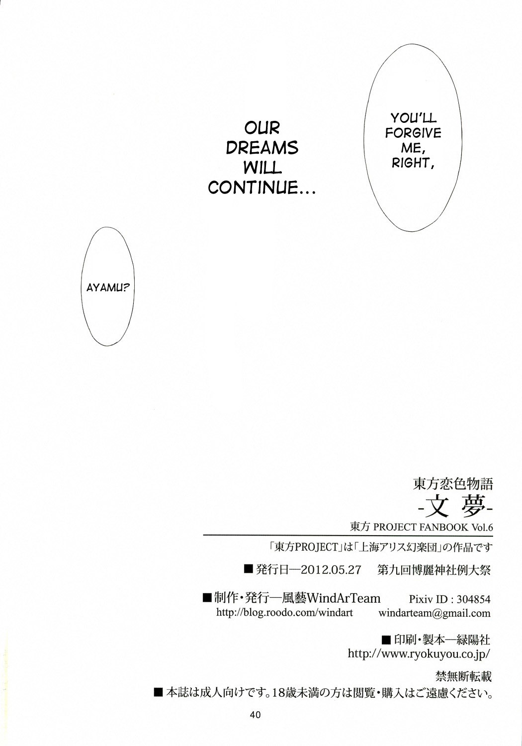 (Reitaisai 9) [WindArTeam (WindArt)] Touhou Koiiro Monogatari - AyaMu - (Touhou Project) [English] {desudesu}